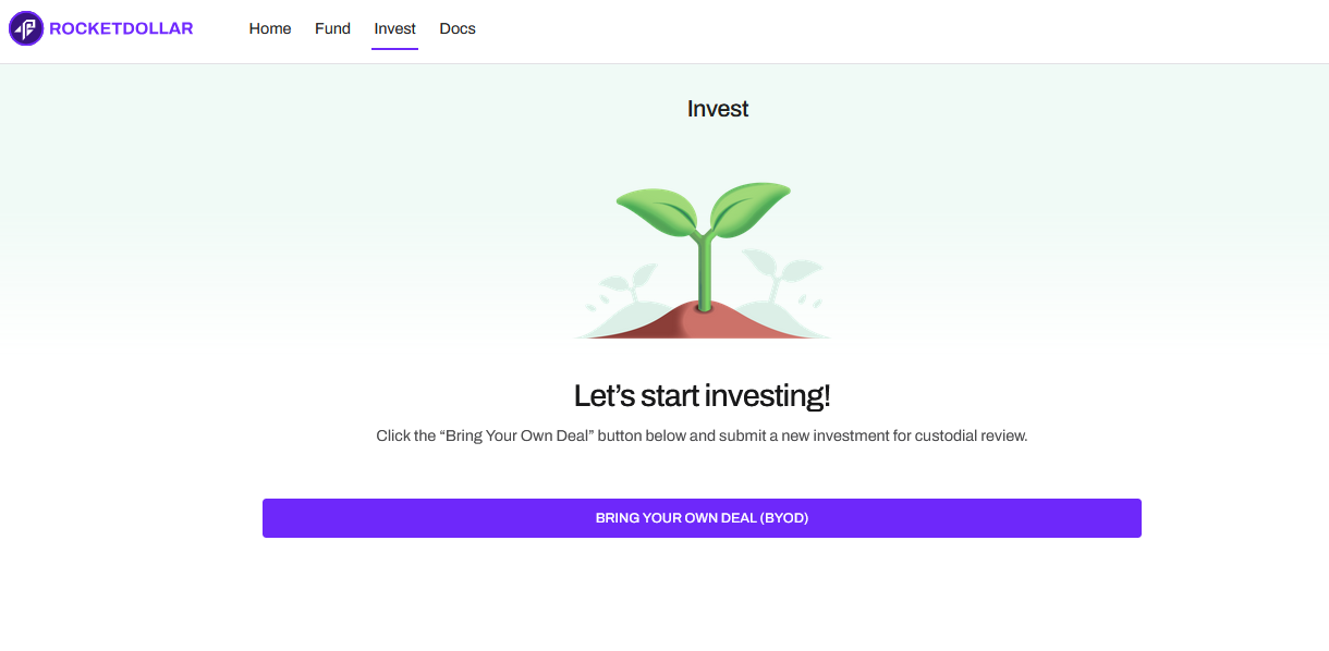 Step 1: From the Invest screen, select “Bring Your Own Deal"