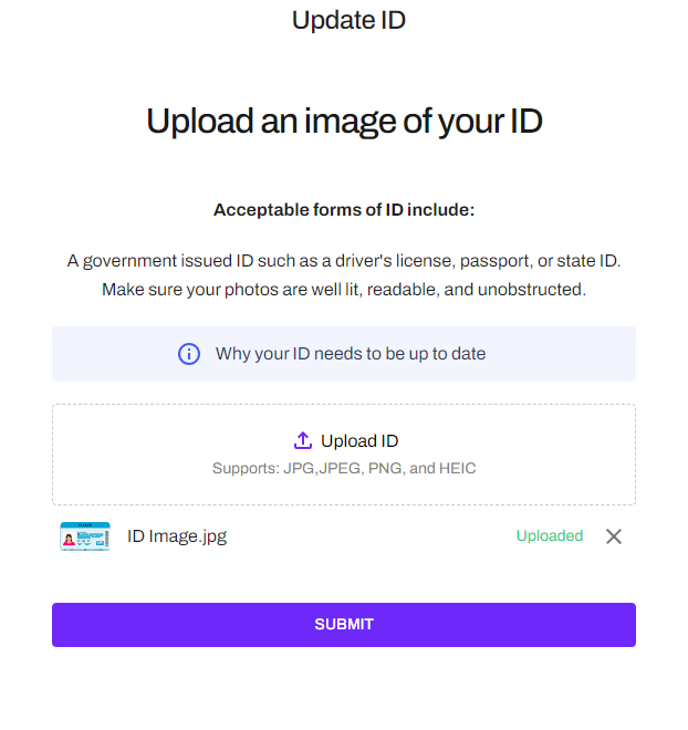 - The ID upload can also be accessed when purchasing an additional account and needs to update their ID.