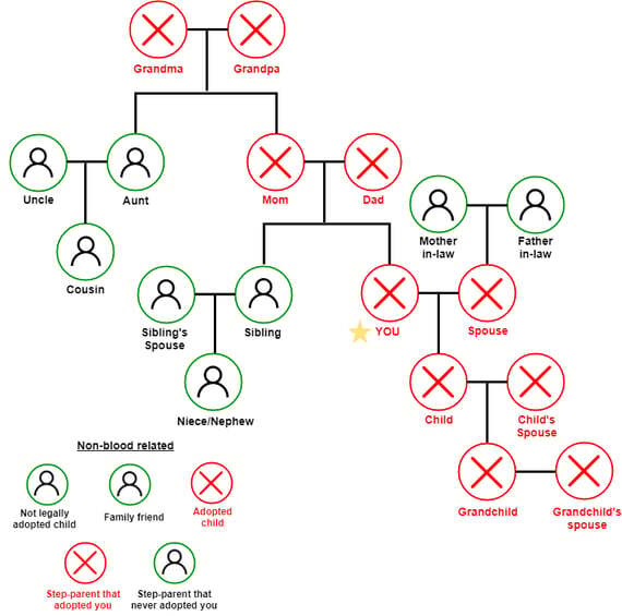 “Children” who were not legally adopted, aunts, uncles, nieces, nephews, cousins, in-laws, brothers, sisters, and non-blood-related family friends are not disqualified family members for prohibited transactions in IRA accounts.